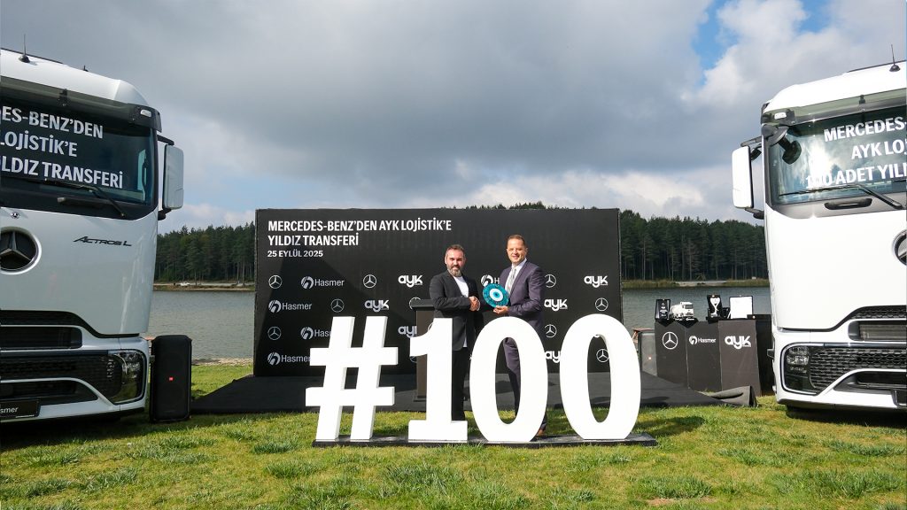 Türkiye lojistik sektörünün önde gelen firmalarından AYK Lojistik’e toplam 100 adet Mercedes-Benz Actros L teslimatı gerçekleştirildi. Hasmer Otomotiv ev sahipliğinde yapılan teslimat töreni, 25 Eylül’de Düzce’de gerçekleşti. Tamamı Mercedes-Benz Türk Aksaray Kamyon Fabrikası’nda üretilen ve yüksek güvenlik donanımları, yakıt verimliliği ve konfor özellikleriyle öne çıkan araçlar AYK Lojistik filosuna katıldı.