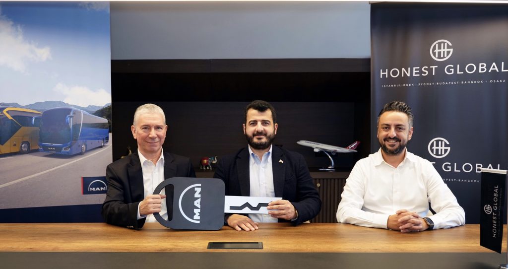 Honest Holding Merkez Binası’nda düzenlenen teslimat törenine; Honest Holding Yönetim Kurulu Başkanı Cengiz Deveci, MAN Kamyon ve Otobüs Ticaret A.Ş. Otobüs Satış Direktörü Can Cansu ve MAN Türkiye Bölge Satış Müdürü Emrah Albustanoğlu katıldı. İki firmanın yöneticileri, törende Honest Global ve MAN’ın aralarındaki güçlü iş birliğine vurgu yaparak, bunun sektöre sağlayacağı katkıları paylaştı.